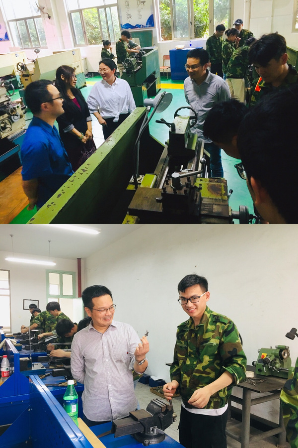 6月18日下午,太阳成集团122ccvip党总支书记巫少龙,副经理张玉贤一行前往衢州中等专业公司看望实习中的同学们,衢州中等专业公司副董事长蔡文兰,机电工程学部姚新科陪同。