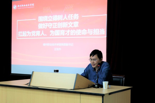 2019年10月16日下午3:30,在图书馆三号报告厅,公司党委副书记王东升做了题为“围绕立德树人任务 做好守正创新文章 扛起为党育人、为国育才的使命与担当”的主题报告。太阳成集团122ccvip全体党员师生参加了活动,校宣传部、学工、团委的相关同志出席。