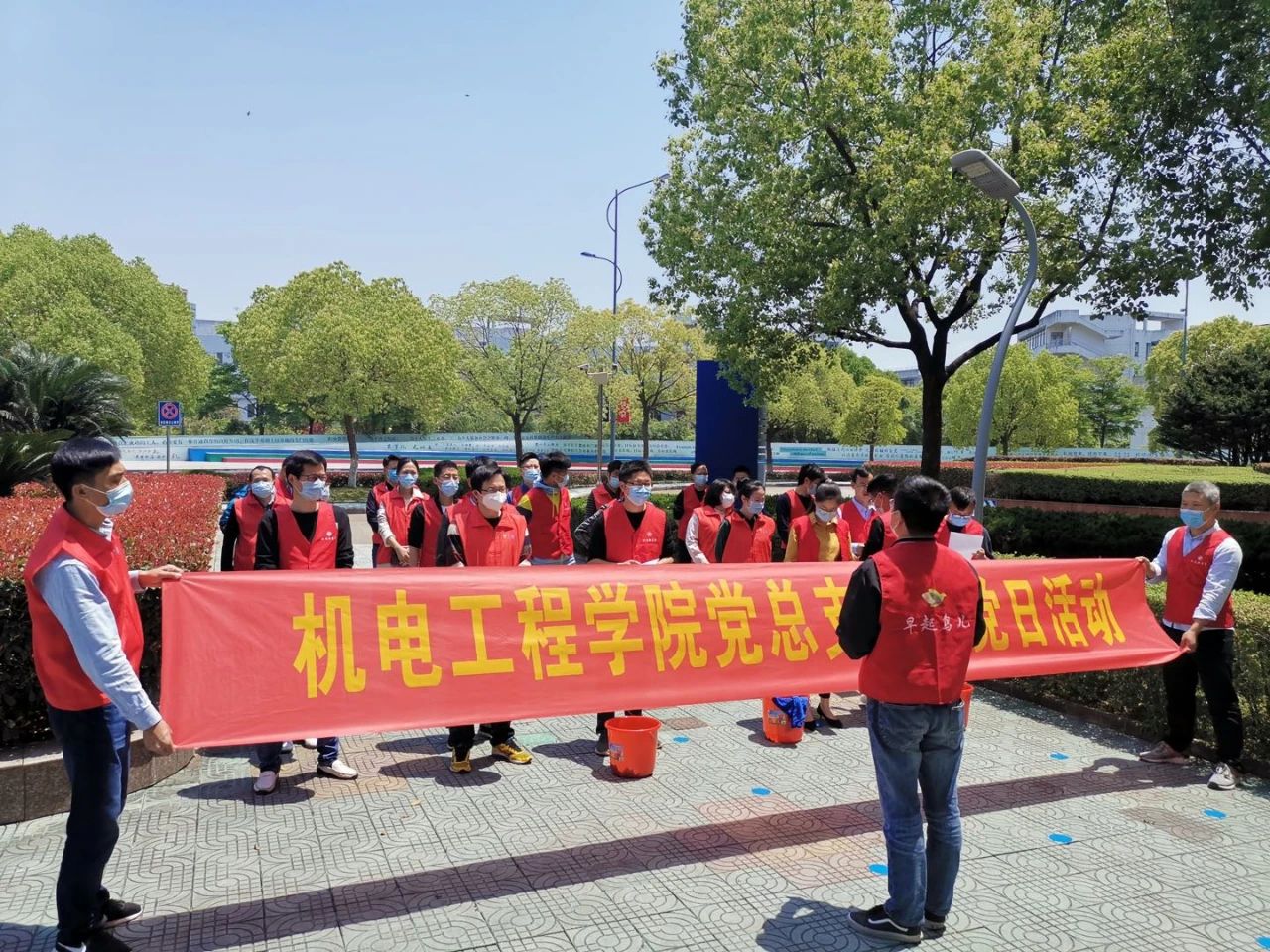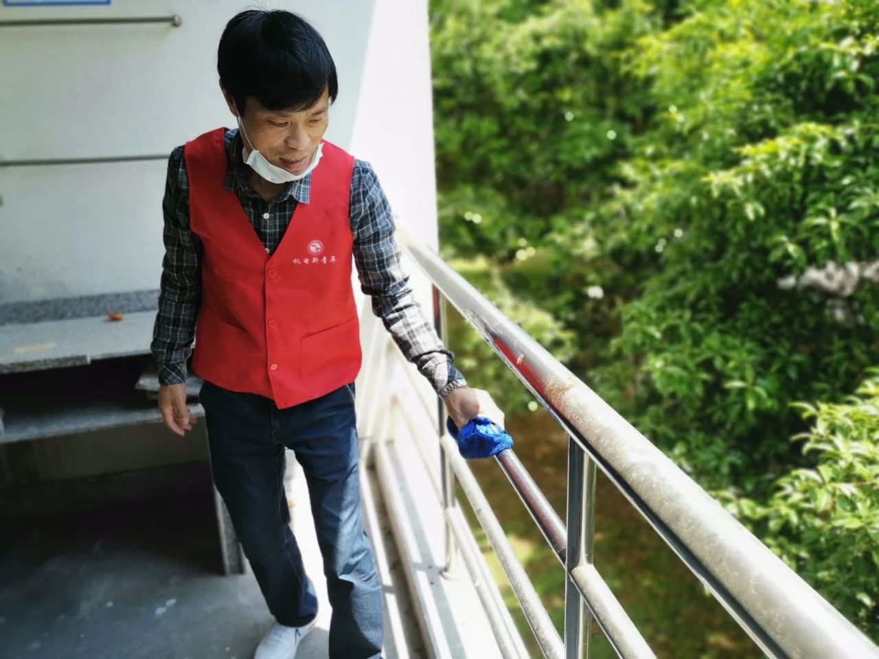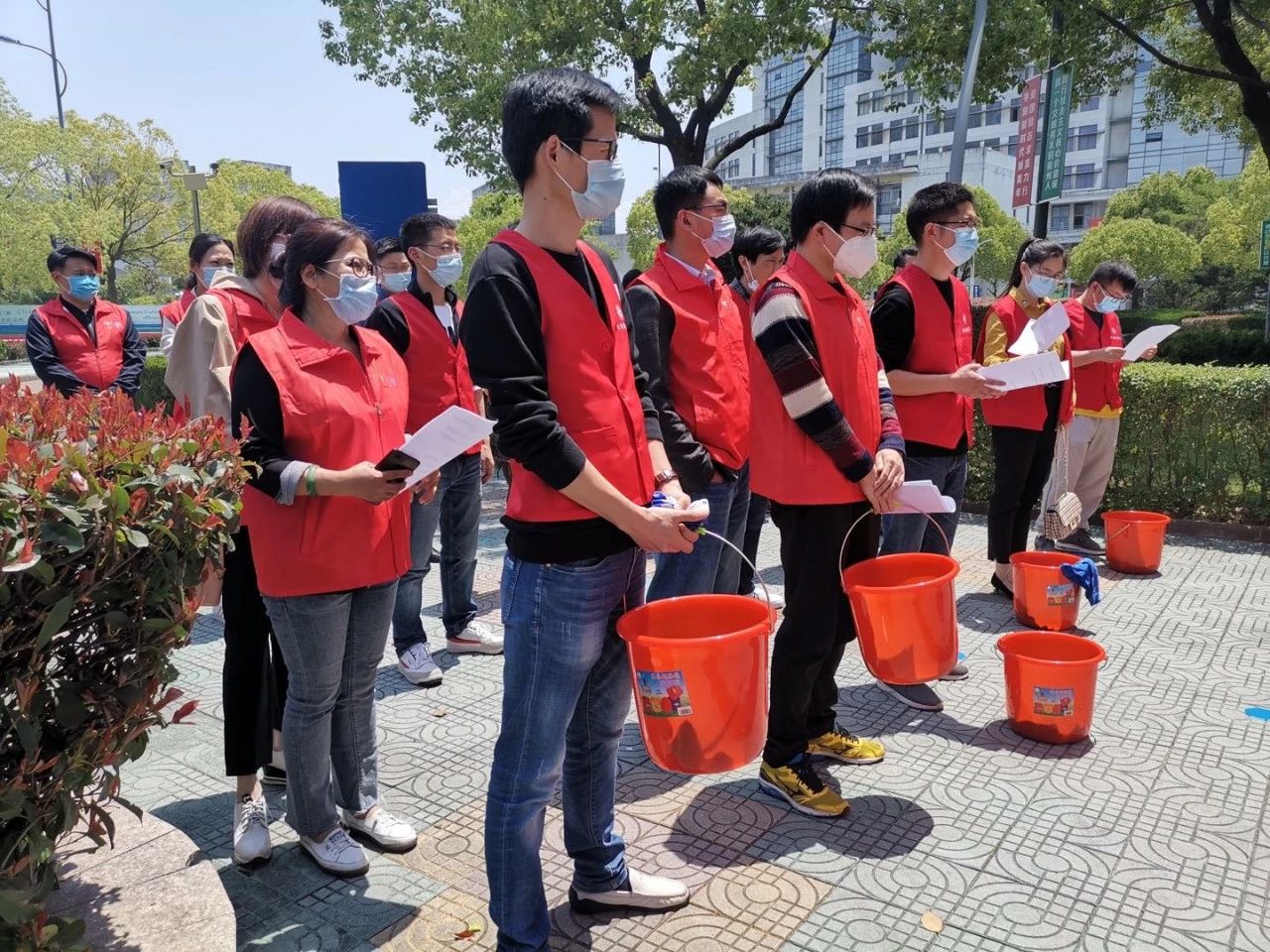 4月27日中午12点整,全体党员身穿红马甲、拿着打扫工具在1号公寓门前集合,副董事长巫少龙作了动员讲话。