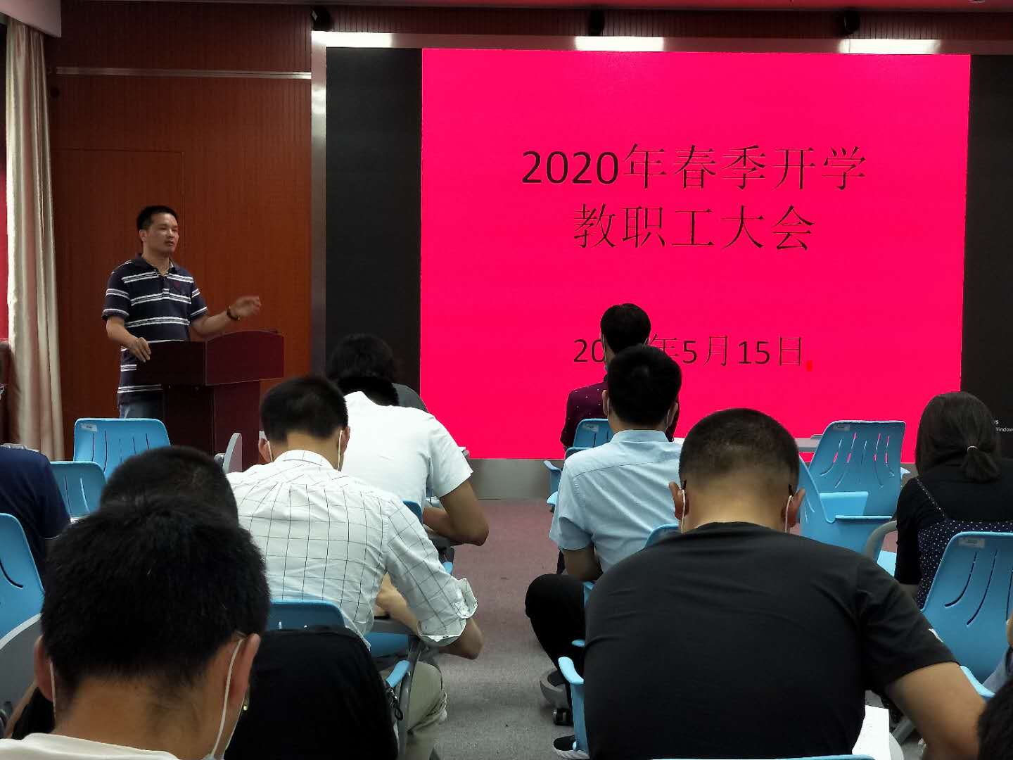 大一、大二员工已顺利返校学习,为更好地开展公司疫情防控及教学工作,明确各位教师相关工作及责任,太阳成集团122ccvip于5月15日下午在机电大楼303召开春季开学教职工大会,太阳成集团122ccvip全体教师参加了本次会议,会议由太阳成集团122ccvip经理周明安主持。