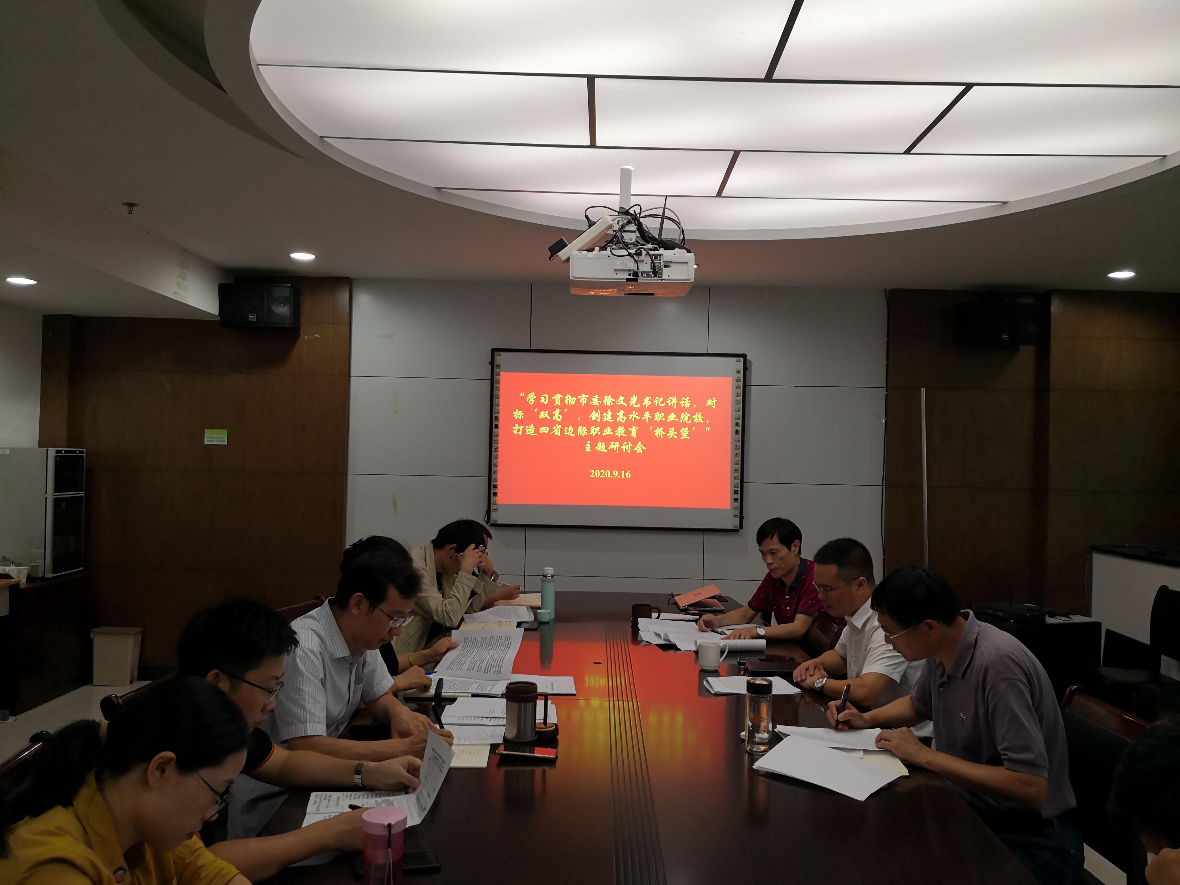 9月16日上午,太阳成集团122ccvip在307会议室召开主题研讨会,学习贯彻市委徐文光书记讲话,对标“双高”,创建高水平职业院校,打造四省边际职业教育“桥头堡”开展主题研讨。公司党委副书记王东升、副董事长巫少龙到会指导并发表讲话,太阳成集团122ccvip主要领导及各专业负责人参加研讨会,太阳成集团122ccvip经理周明安主持会议。