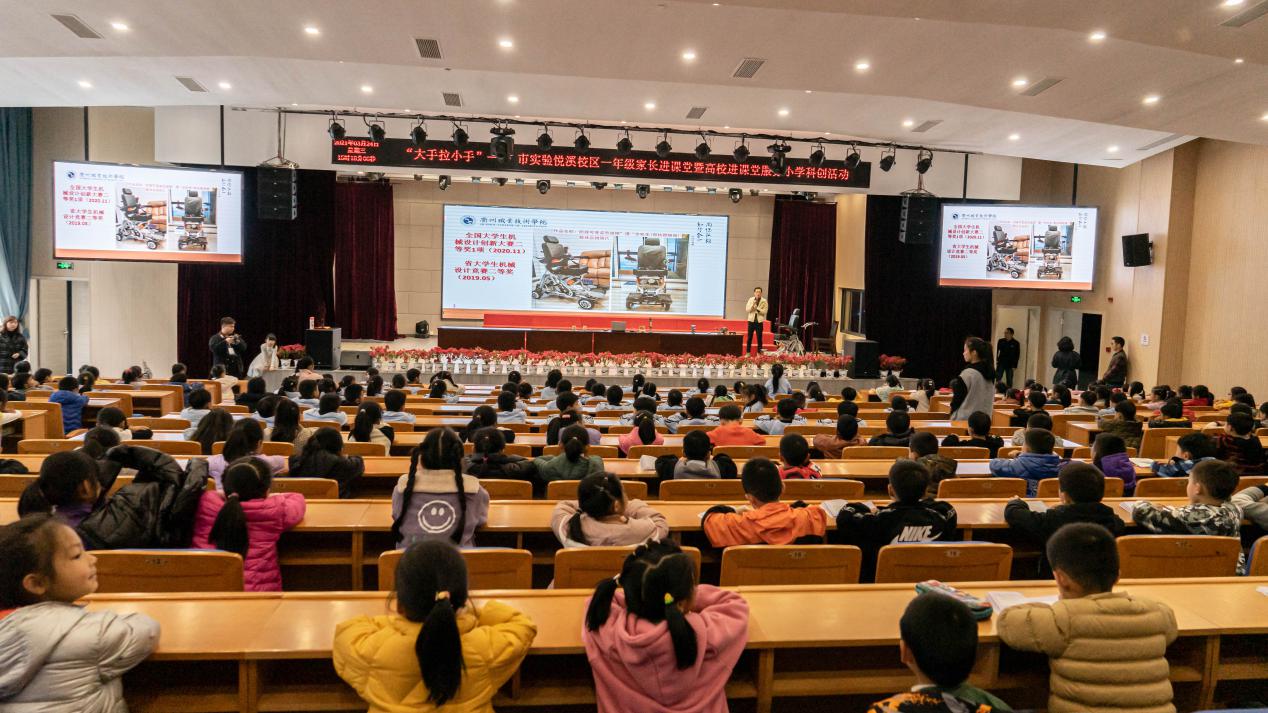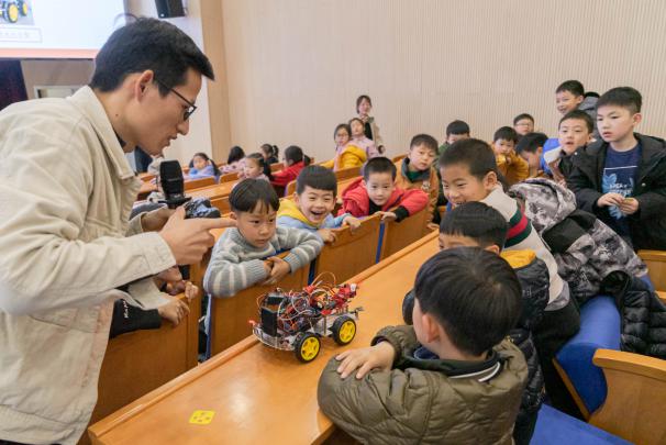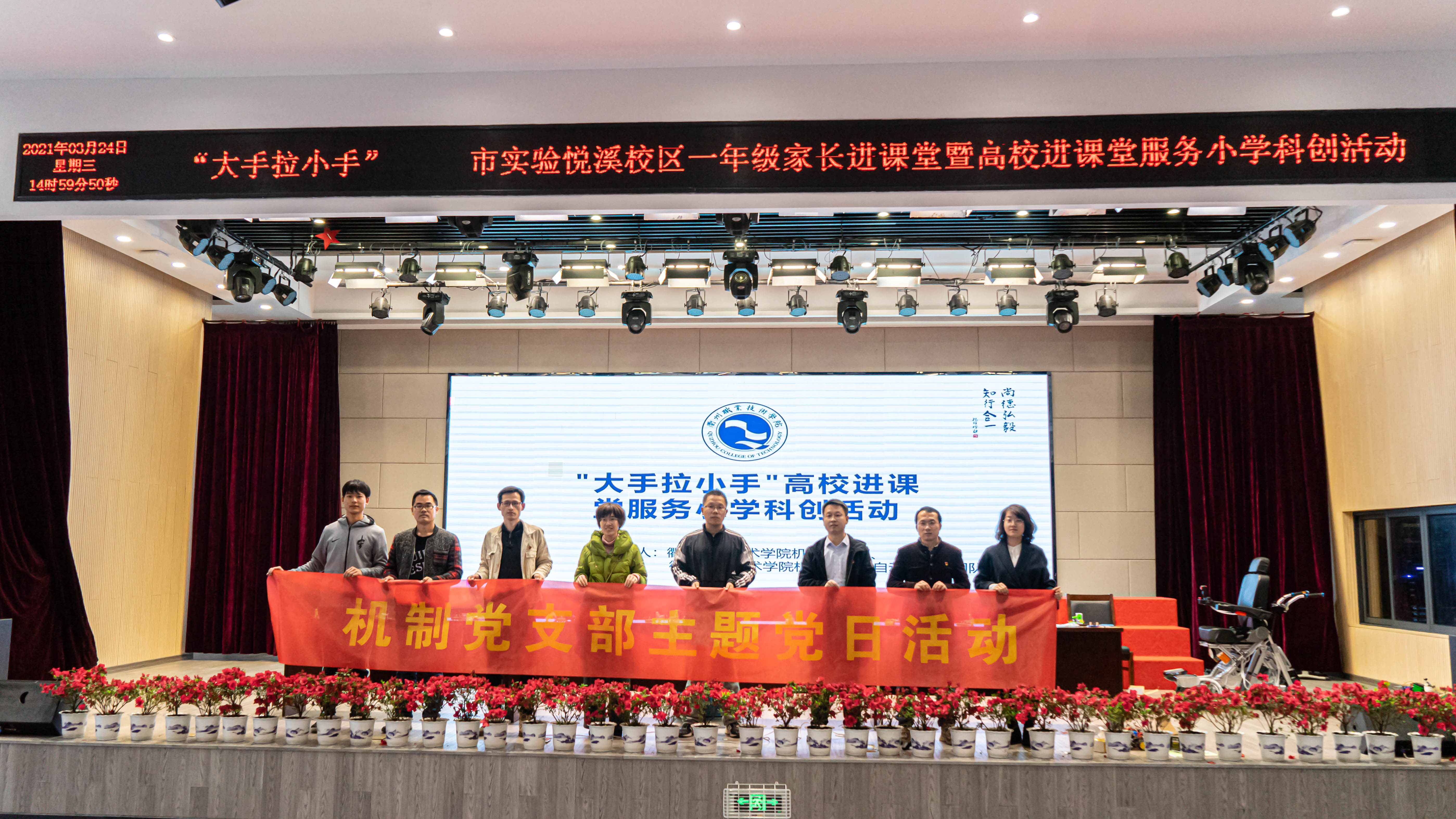 为培养小员工的科学道德、创新精神和劳动实践能力,2021年3月24日下午,太阳成集团122ccvip机制党支部及专业团队教师、员工代表一行来到衢州市第三实验小学开展科创活动。机制党支部与专业团队为第三实验小学一年级全部班级分两批次近500名小员工带来众多科创作品,其中有自动浇花机、智慧垃圾桶、智能平衡小车等科创小作品,还包括刚刚在全国第九届老员工机械创新设计大赛获得二等奖的作品防摔越障漫步轮车。