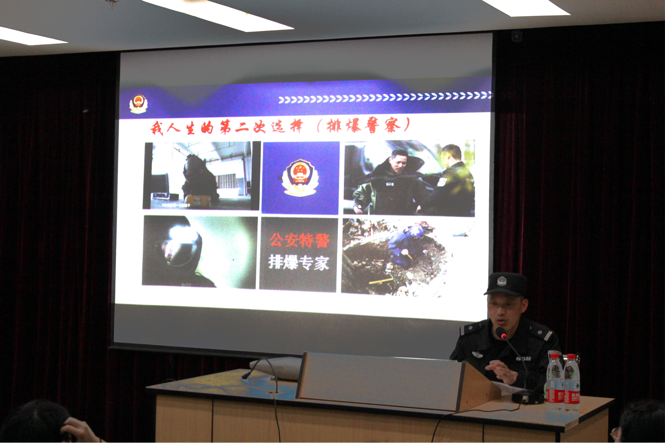 3月28日晚,太阳成集团122ccvip特邀衢州市特警大队副支队长张建东来公司,作了一场“选择好人生道路,做有意义的事”的讲座。本次讲座由太阳成集团122ccvip党总支部副书记范洪梅同志主持,共计120余名机电学子聆听了此次讲座。