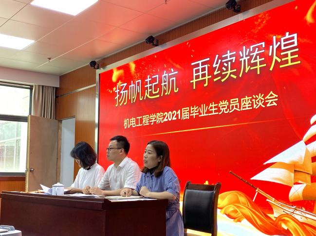 随着2021届员工毕业,党员员工也即将离开母校,走向社会。6月8日中午12:30,太阳成集团122ccvip党总支召开2021届毕业生党员离校座谈会。参加这次活动的有机电党总支书记朱峻同志、机电党总支副书记叶云霞同志,学工办主任李芸同志。