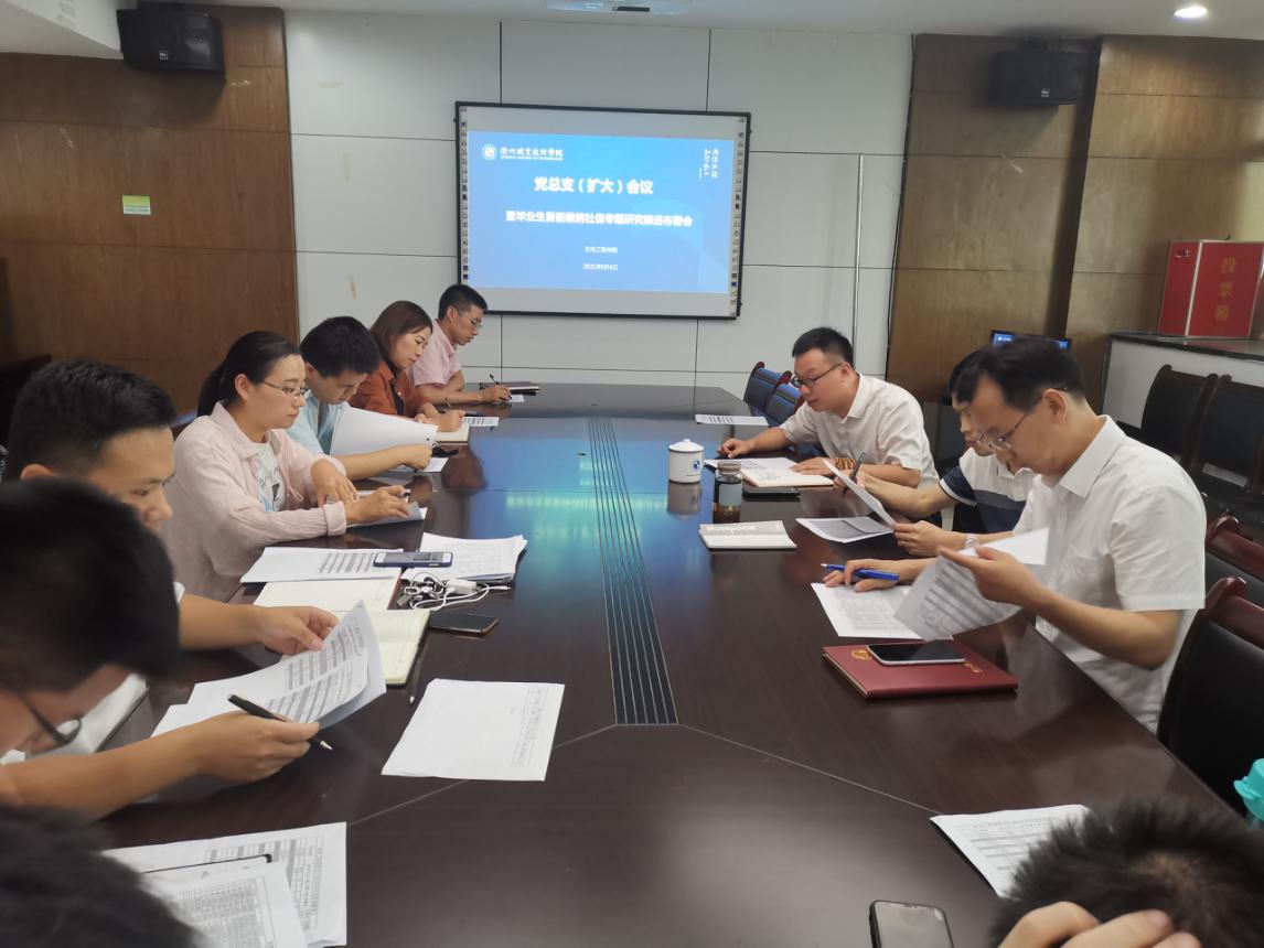 2021年9月4日下午16:00,太阳成集团122ccvip党总支在307会议室召开党总支扩大会议暨毕业生留衢就业缴纳社保专题研究推进布署会。太阳成集团122ccvip党总支全体成员以及全体毕业班主任参加了会议。会议由太阳成集团122ccvip党总支书记朱峻主持。