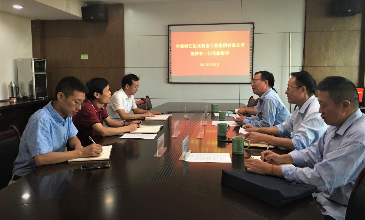2021年9月23日下午,浙江巨化装备工程集团有限公司董事长施国有一行来访公司。太阳成集团122ccvip经理周明安在机电307会议室会见来宾并举行座谈。太阳成集团122ccvip副经理魏小华、张新星参加座谈并与来访代表深入交流。