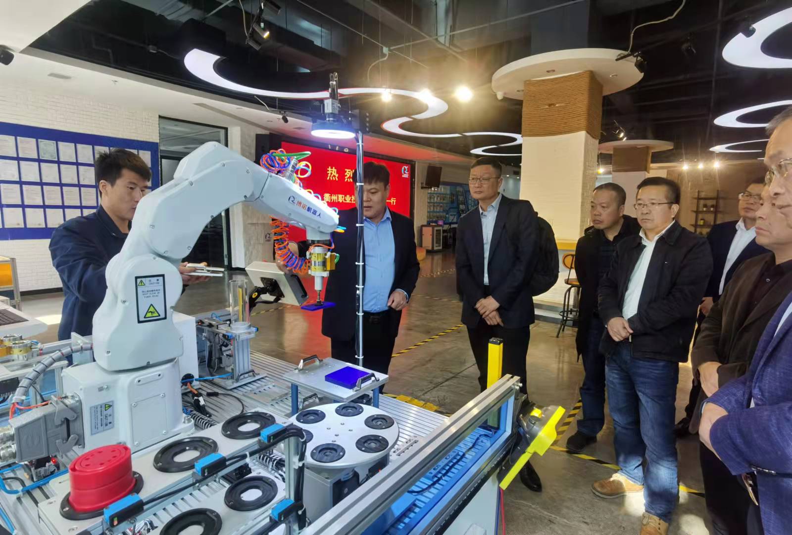 在天津职业技术师范大学机械工程公司,吕延文、何百通一行参观实训室基地,随后进行了座谈,双方就“双高”建设、特色实训基地建设、治理体系建设等特色办学经验进行了交流。