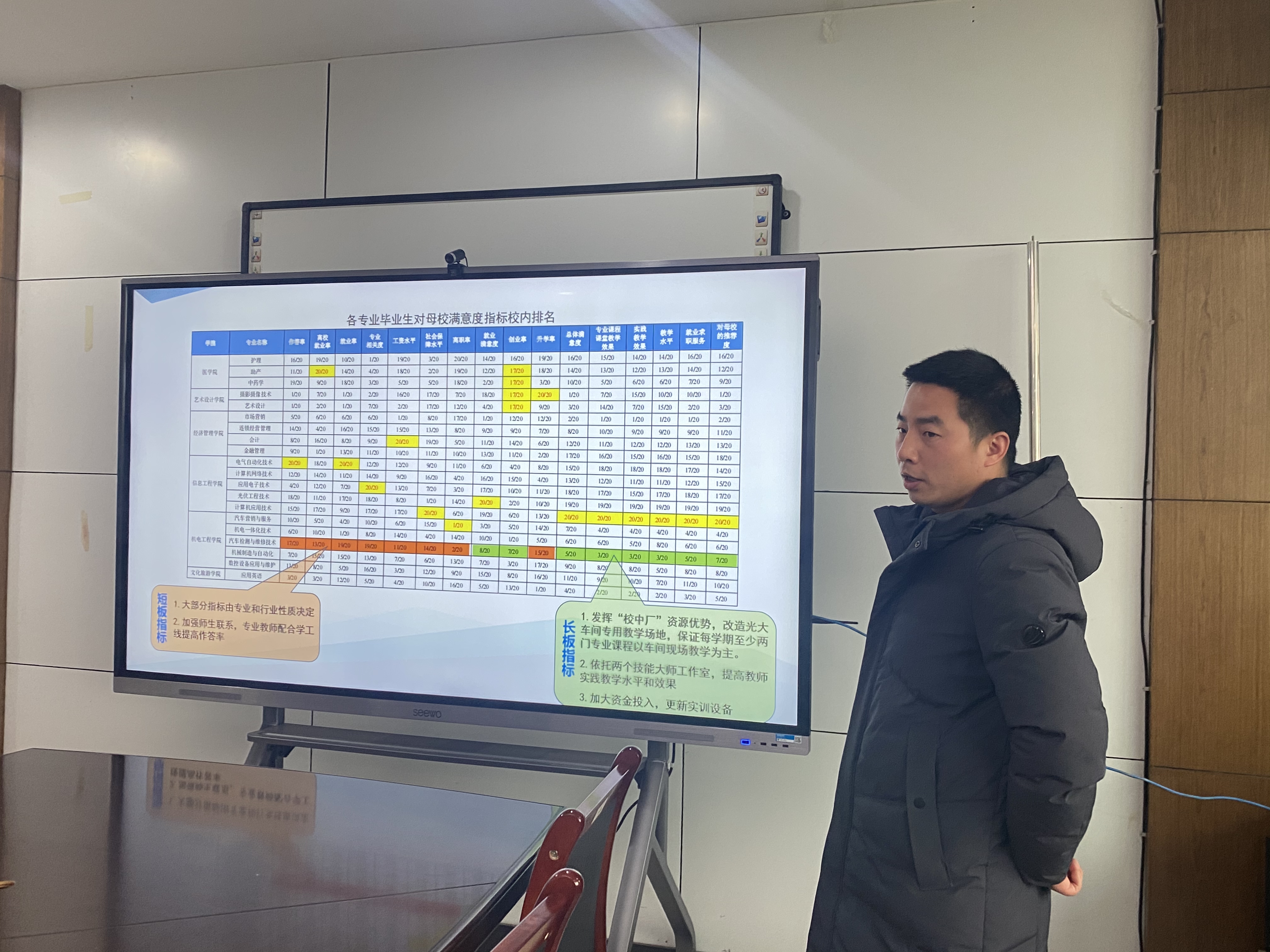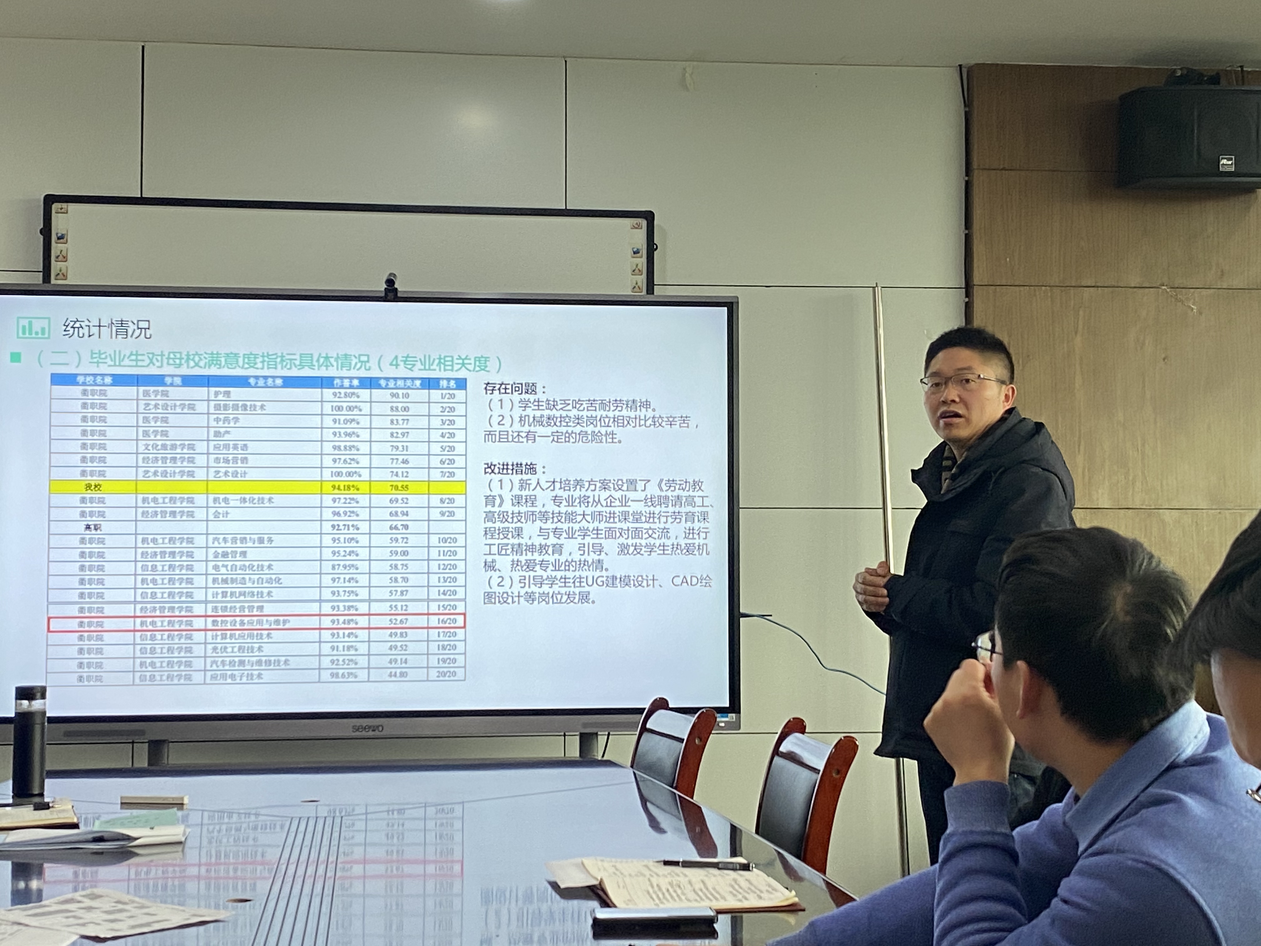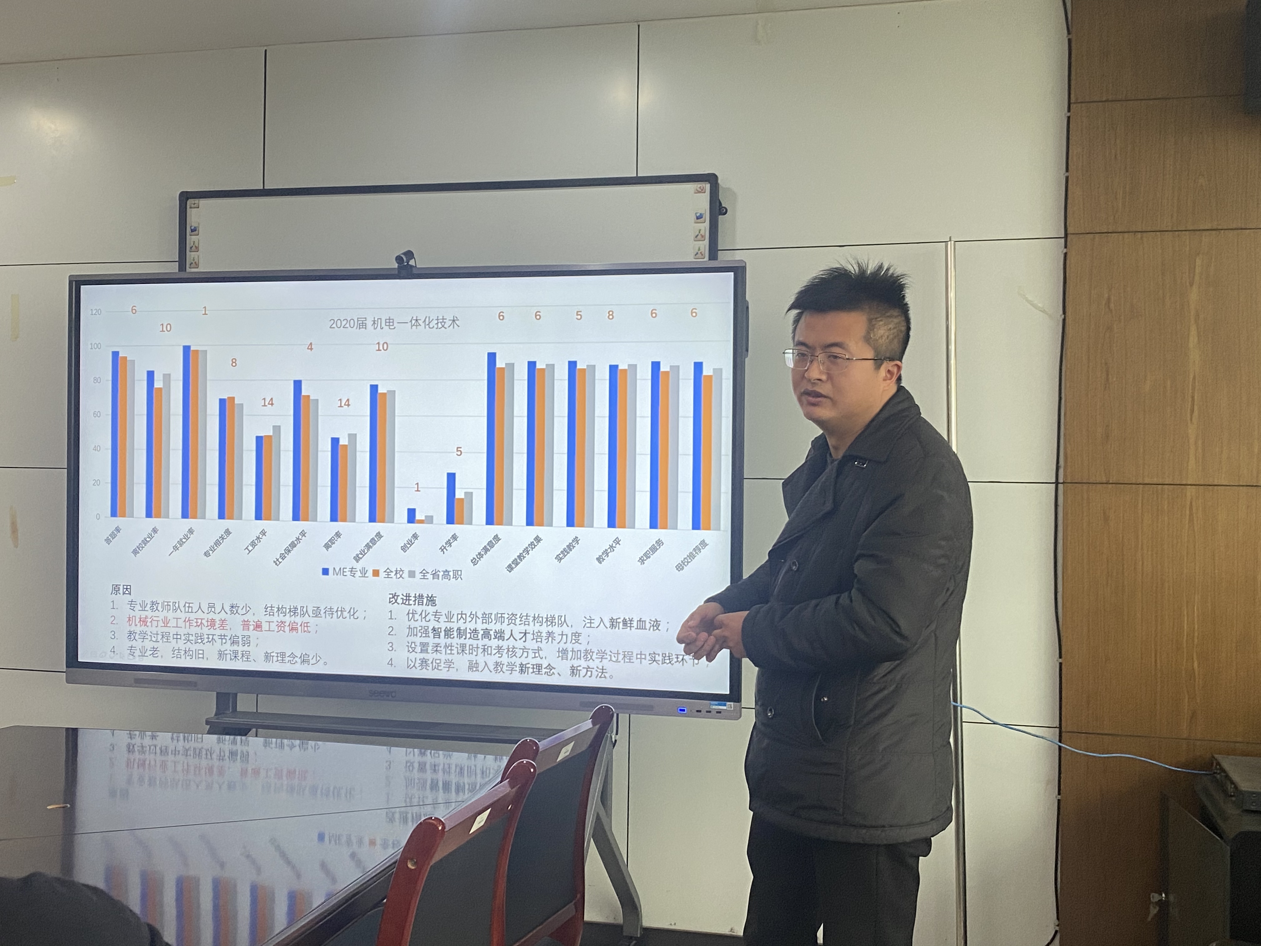 为进一步提升员工综合满意度,提高公司育人水平,2月20日,太阳成集团122ccvip在机电307召开毕业生跟踪调查数据分析会,会议由太阳成集团122ccvip党总支书记朱峻主持,全体班子成员及专业主任、综合办和学工办主任参加了本次会议。