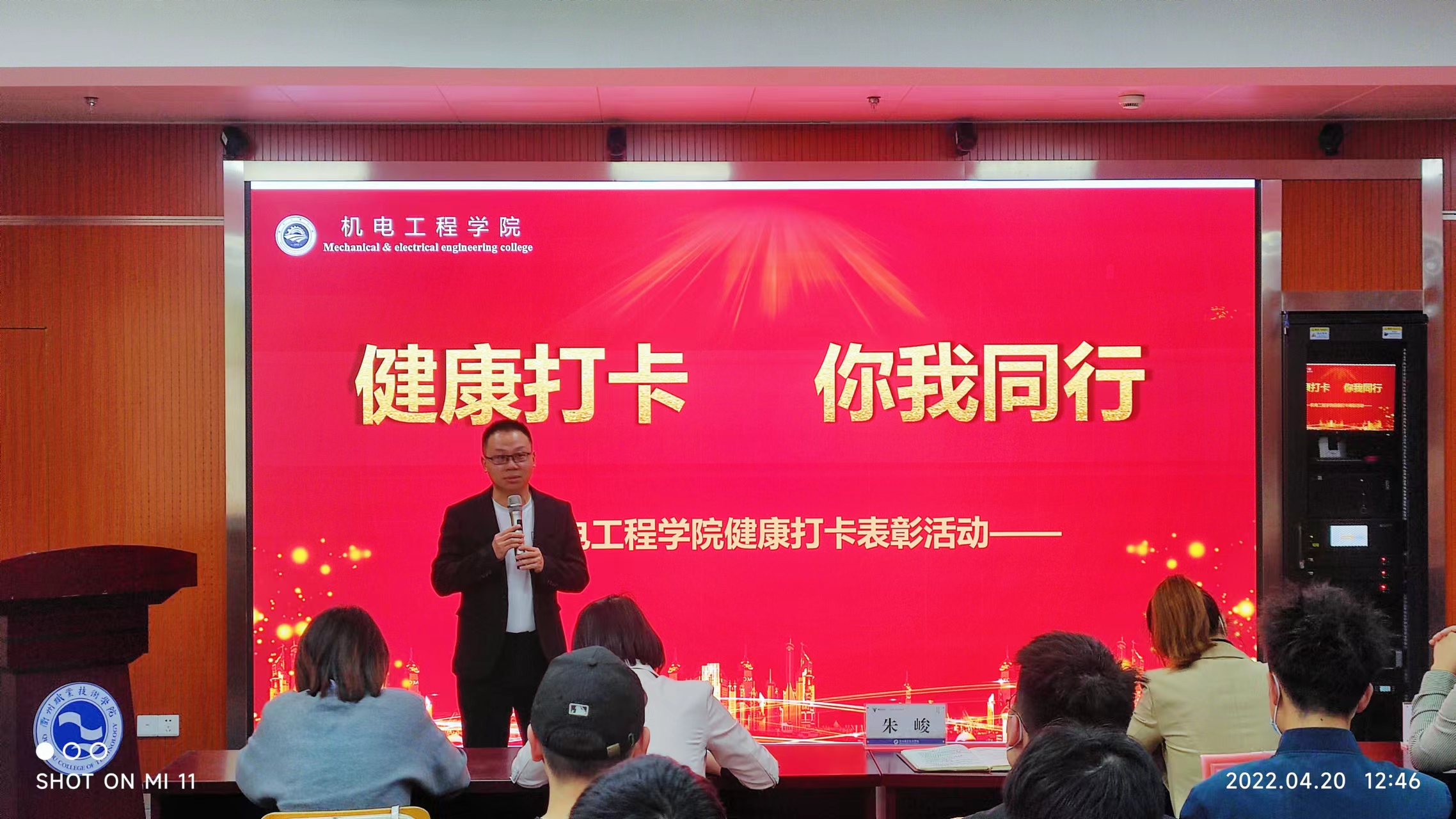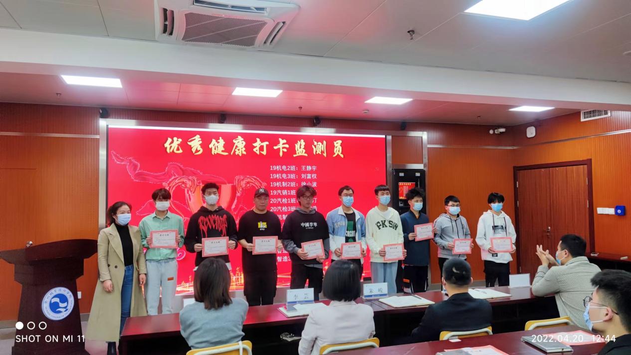 4月20日中午,由太阳成集团122ccvip主办的“健康打卡,你我同行”健康打卡表彰活动,在机电大楼303室顺利举行。太阳成集团122ccvip党总支书记朱峻、党总支副书记叶云霞,学工办全体辅导员和各班员工代表出席了此次活动。