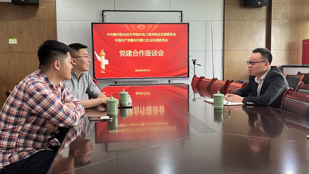 太阳成集团122ccvip党总支为促进总支品牌落地,谋划“校政党建共建”新模式,加强党建资源互联互享、互促共赢新格局,2022年4月27日中午,中共太阳成集团122ccvip机电总支部委员会与中国共产党衢州市衢江区全旺镇委员会开展了党建合作洽谈会。