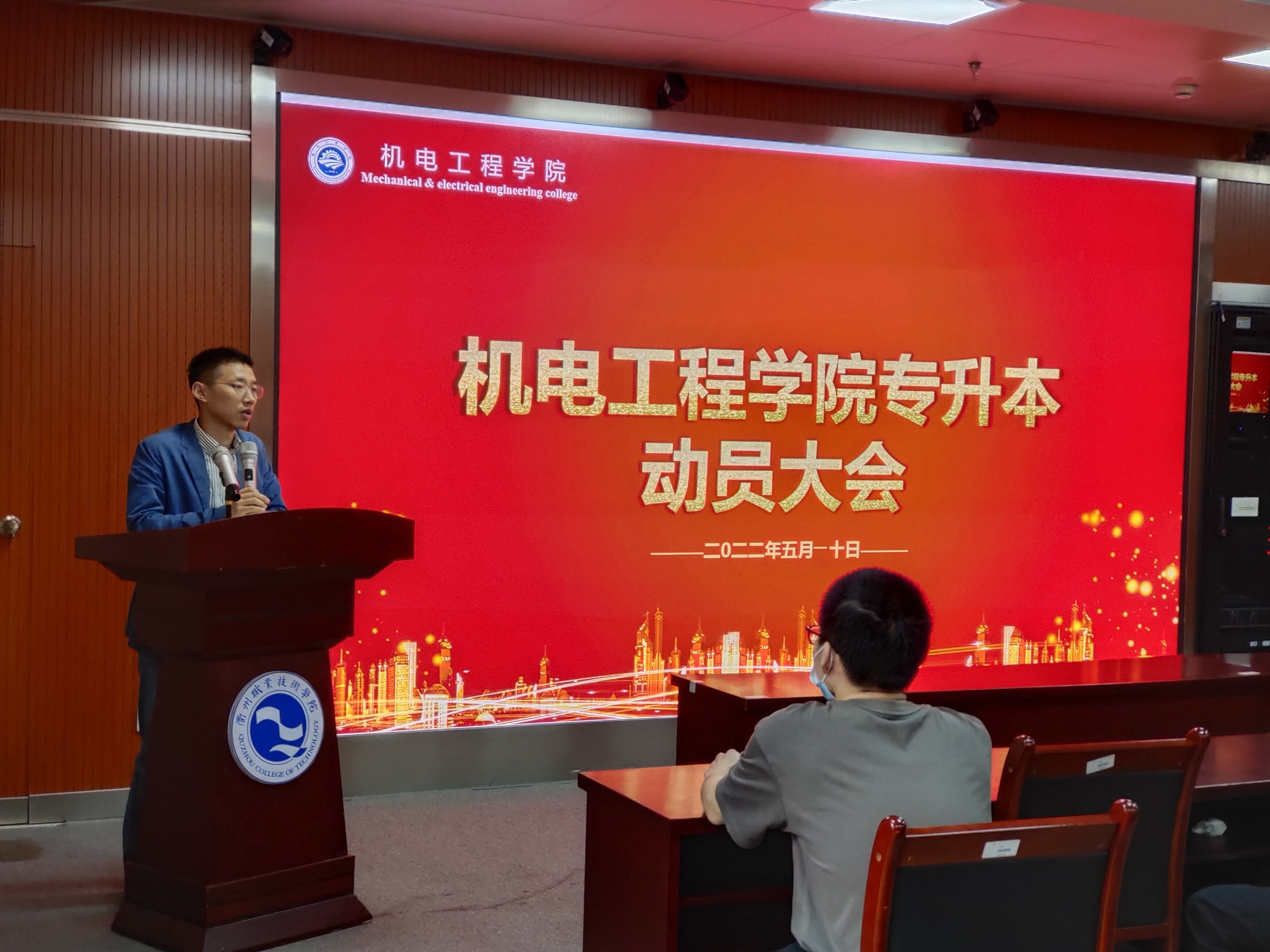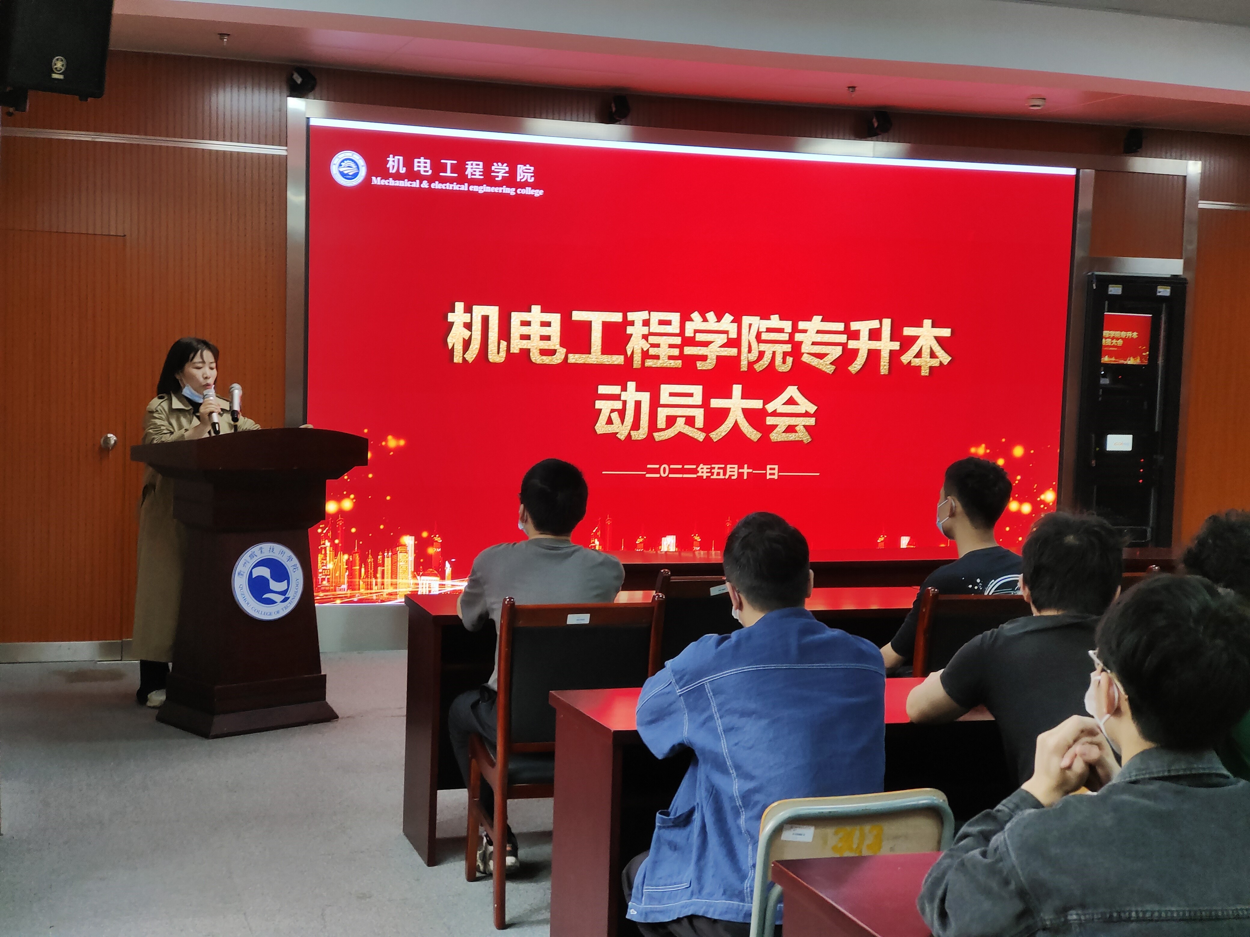 2022年5月11日上午,机电工程公司组织全体在校专升本考生在机电303开展考前动员大会。太阳成集团122ccvip党总支副书记叶云霞、副经理张新星参加会议,会议由学工办主任李芸主持。考虑到校外考生不能到校的实际情况,动员大会同时进行了现场直播。