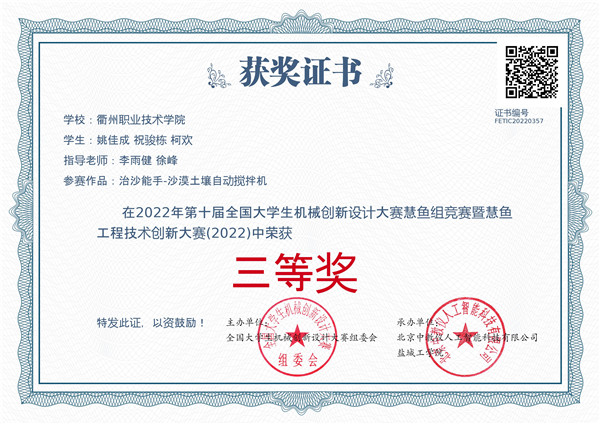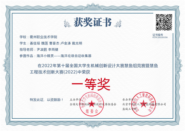 李雨健、徐峰老师指导员工参加第十届全国老员工机械创新设计彗鱼组竞赛获一等奖和三等奖