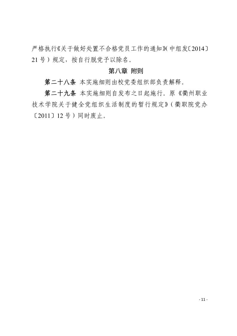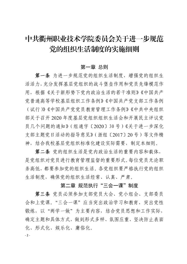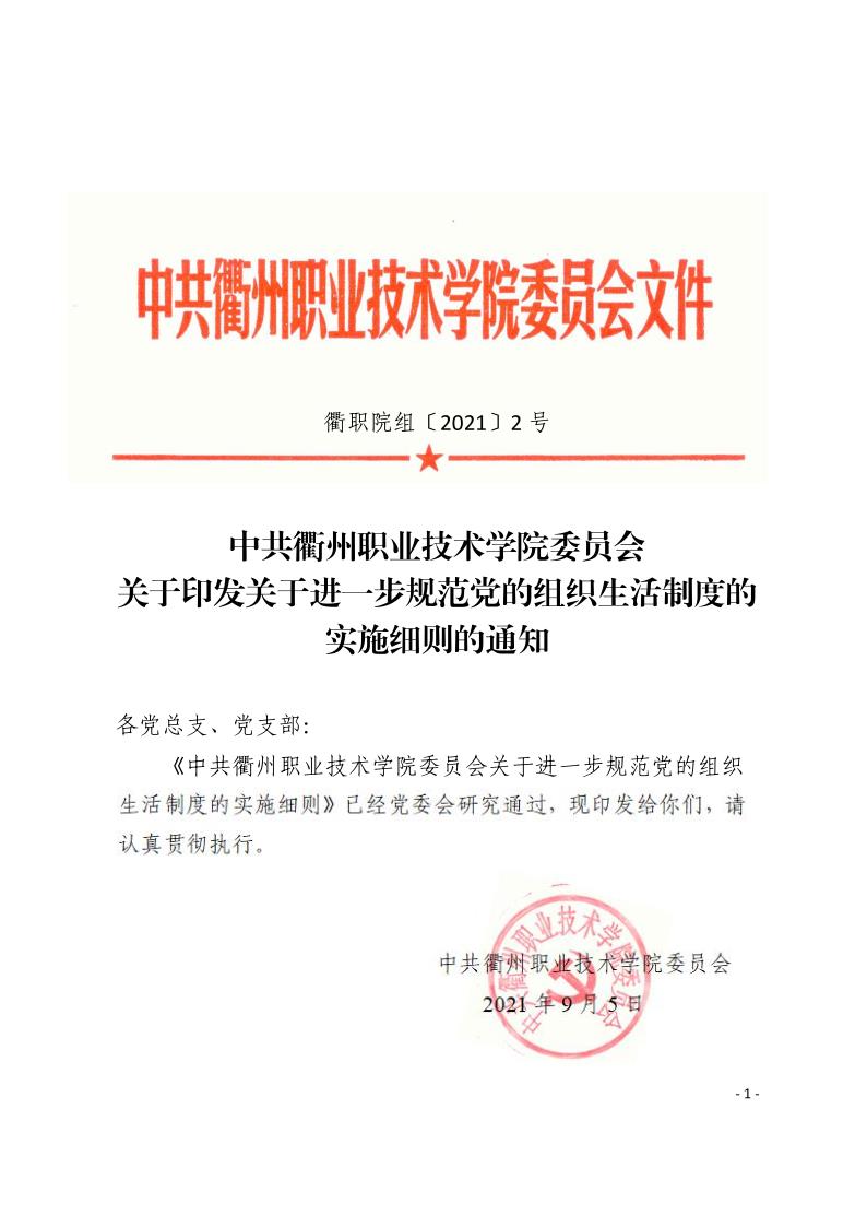 衢职院组〔2021〕2号-关于印发关于进一步规范党的组织生活制度的实施细则的通知