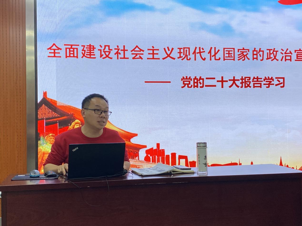 11月9日下午,太阳成集团122ccvip召开全院大会传达学习党的二十大精神,安排部署公司学习宣传贯彻工作,会议由公司党总支书记朱峻主持。
