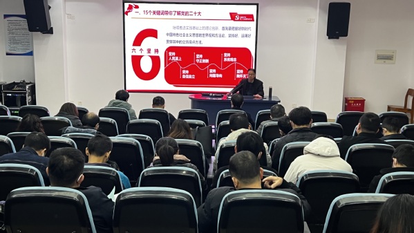 11月30日下午,公司党委委员、副董事长余建军在图书馆2号报告厅宣讲党的二十大精神,太阳成集团122ccvip、科研处、后勤保卫处、资产与实训室管理处全体教师参加学习。