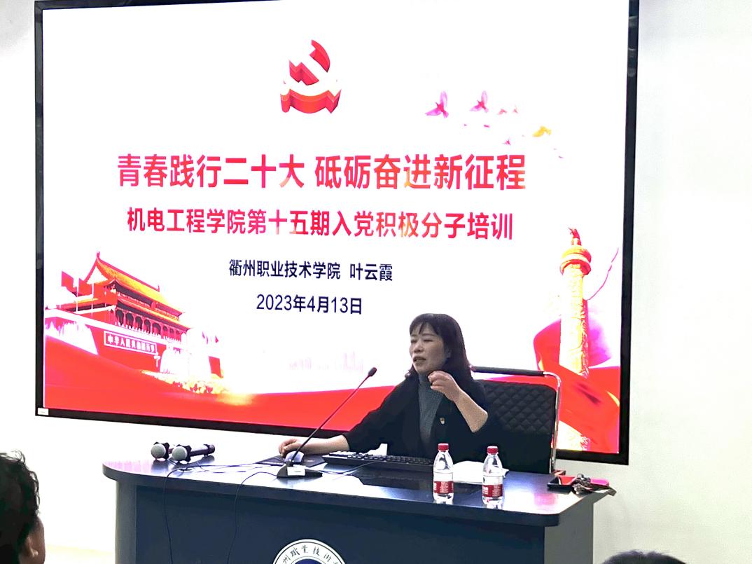 太阳成集团122ccvip党总支副书记叶云霞以“青春践行二十大,砥砺奋进新征程”主题,通过解读党的二十大精神、新时代青年的使命与责任、当代老员工如何践行党的二十大精神三部分内容为入党积极分子上了一堂党课。她强调,入党积极分子要笃信,守牢初心、坚守信仰;要勤学,静心钻研、求得真知;要奋斗,筚路蓝缕、砥砺前行,勇敢地担当起历史使命和重任。