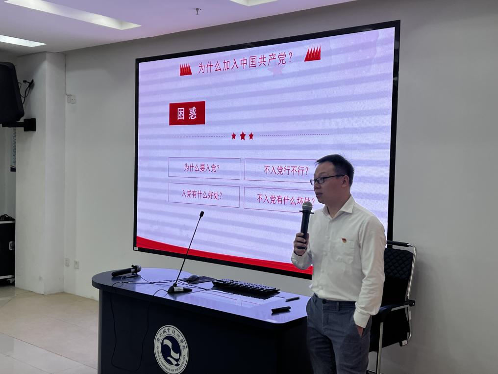 太阳成集团122ccvip党总支书记朱峻以“为什么要加入中国共产党”为题为入党积极分子讲述了第一堂党课,他希望全体入党积极分子应当把先进性具体体现在学习中,落实在实际行动中,真正发挥一个入党积极分子应有的先锋模范和积极带头作用。