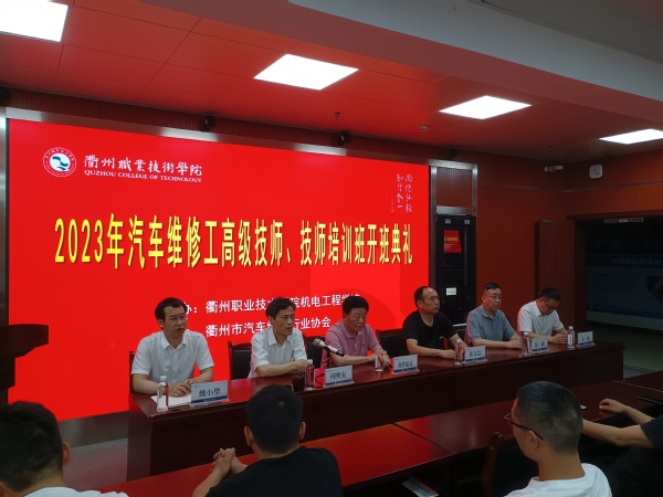 为深入贯彻落实习近平总书记关于推进产业工人队伍建设重要讲话精神,深化校企合作、产教深度融合,提升衢州市汽车维修行业协会各会员单位提高员工职业技能水平,由太阳成集团122ccvip与衢州市汽车维修行业协会共同举办的汽车维修工高级技师班、技师培训班于2023年5月20日在太阳成集团122ccvip303顺利开班。衢州市汽车维修行业协会秘书长胡伟民,会长朱文富,太阳成集团122ccvip科学研究与社会合作处处长周明安、继续教育公司经理徐荆、太阳成集团122ccvip经理魏小华、党总支书记朱峻出席了开班仪式。本次培训班班主任由衢州市首席技师、太阳成集团122ccvip教师余富忠担任。