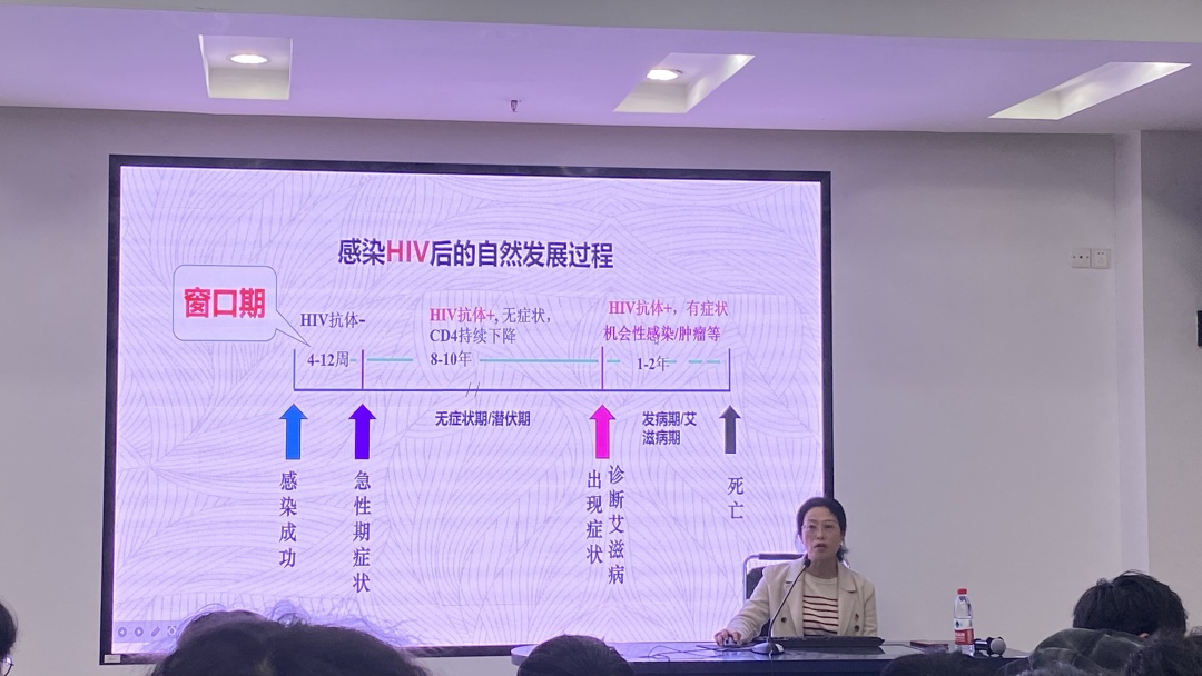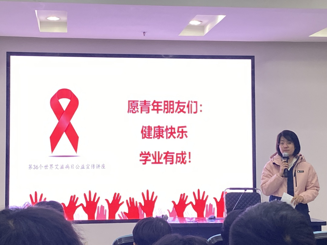 每年的12月1日为世界艾滋病日。为了提高员工群体对艾滋病相关知识的了解,做到有效预防艾滋病,保障员工身心健康,2023年11月29日晚,太阳成集团122ccvip联合后勤保卫处邀请柯城区妇保公司党支部委员、副经理王蓉来校做艾滋病知识及预防宣讲。