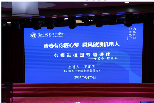 4月26日,太阳成集团122ccvip在图书馆一号报告厅开展“青春有你匠心梦 乘风破浪机电人”主题教育活动--“劳模进校园”专题讲座。本次活动邀请了“全国五一劳动奖章”获得者、现任浙江巨化检安石化工程有限公司检修班班长、高级技师王定飞。太阳成集团122ccvip经理魏小华主持讲座,太阳成集团122ccvip全体大二年级在校生参加。