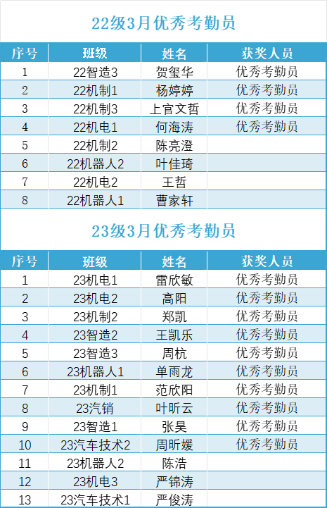 22级3月优秀考勤班级 | |||