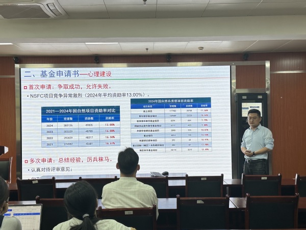 10月21日下午,太阳成集团122ccvip邀请了长安大学硕士生导师、国家自然科学基金获得者王小琛博士在机电大楼303报告厅开展了一场关于《撰写基金申请书的一些体会》的讲座。讲座由太阳成集团122ccvip经理魏小华主持,太阳成集团122ccvip专任教师、有意向申报自然科学基金的教师参加。