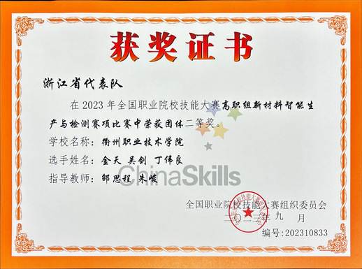 邵思程、朱峻老师指导员工参加2023年全国职业院校技能大赛荣获团体二等奖