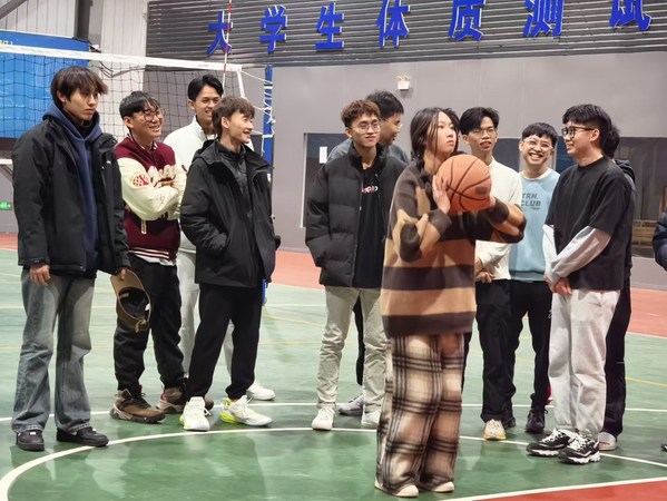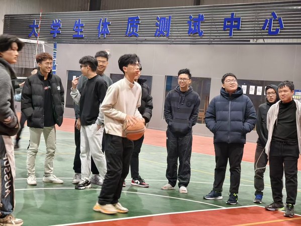 折返跑上篮更是技术与速度的考验。参与者们如离弦之箭般飞驰而出,在折返点迅速转身,向着篮筐全力冲刺上篮。用脚猜拳环节回顾童年的方式让大家忍俊不禁。同学们围坐一圈,以脚代手,出拳、比布、亮剪刀,欢闹声此起彼伏。