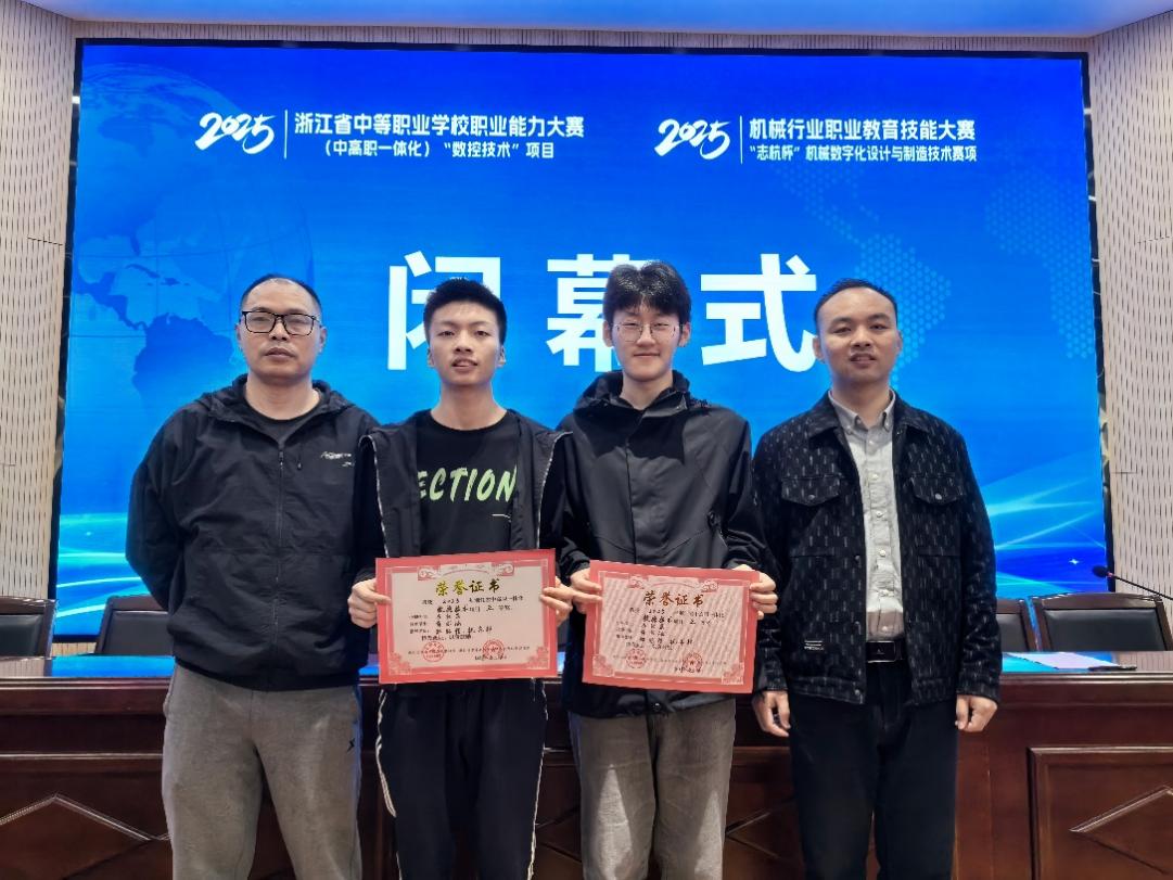 近日,2025年浙江省中高职一体化“数控技术”项目比赛在永康市职业技术公司顺利举行,我院徐欣彬、蒋亦涵、刘华辉三位同学分别与衢州第二中等专业公司、衢州中等专业公司、衢州市工程技术公司中职员工组成的三支联合参赛团队均获大赛三等奖。