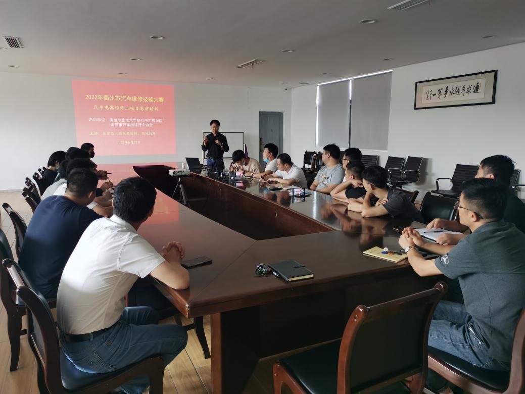 企业”的主题党日活动。余富忠同志作为主讲人并开展了2022年衢州市汽车维修技能大赛汽车电器维修工项目赛前培训,在培训过程中余富忠同志思路清晰、环节紧凑、重难点突出,参赛选手积极参与讨论,余富忠同志耐心解答学员问题。