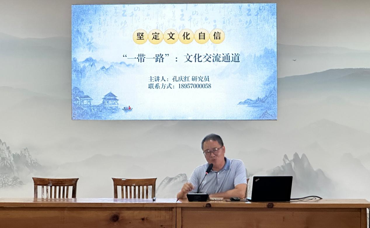 随后,衢州职业技术公司党委委员、宣传部部长孔庆红同志以“‘一带一路’:文化交流通道”为题,从中国文化的特点为出发点,给全体教师党员上了一堂生动的党课。他指出,中国之所以提出“一带一路”倡议,是因为其改革开放需要向西加强与发展中国家的合作,从而为未来赢得先机;中国提出“一带一路”的原因,在于中国丝绸之路精神的传承,以及天下大同文化观念的延续。他希望,全体党员要肩负起责任和使命,体现“一带一路”的精神,为构建“人类命运共同体”做出自己力所能及的贡献,为实现中华民族伟大复兴而矢志不渝,奋勇争先。