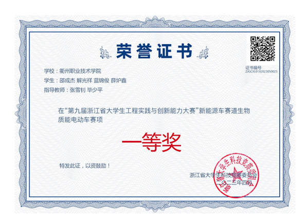 张雪钊、毕少平指导员工获2023年浙江省老员工实践与创新能力大赛新能源车赛道一等奖