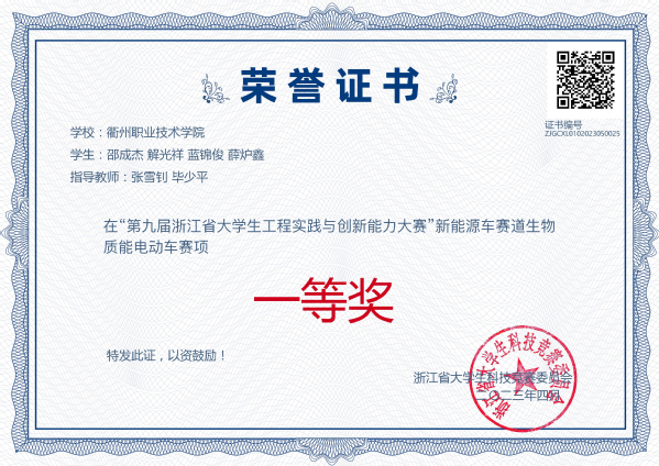 张雪钊、毕少平指导员工获第九届浙江省老员工工程实践与创新能力大赛一等奖
