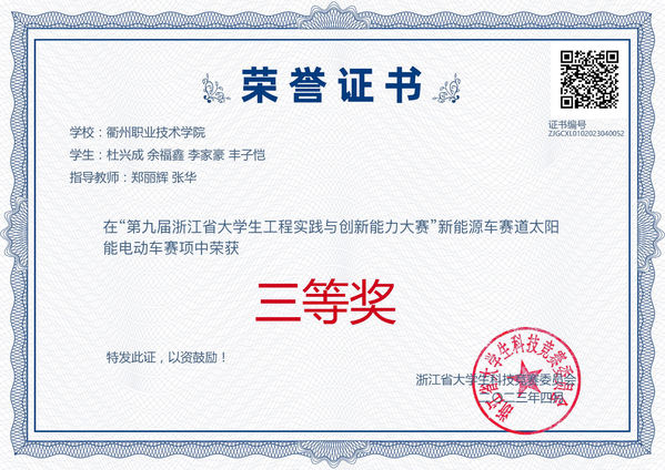 郑丽辉、张华指导员工获第九届浙江省老员工工程实践与创新大赛三等奖