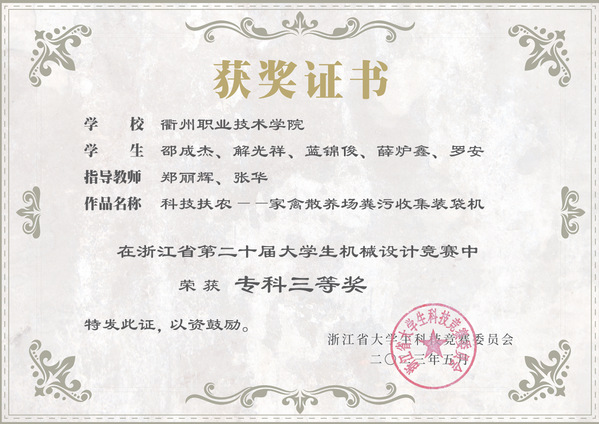 郑丽辉、张华获第二十届浙江省老员工机械设计竞赛三等奖